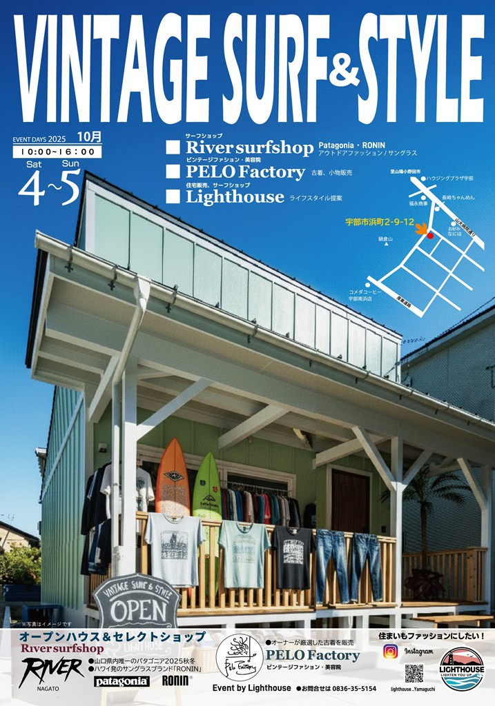 ●長門市のサーファショップ「River surfshop」によるパタゴニアブランド秋物販売、ハワイ発「RONIN」サングラス販売